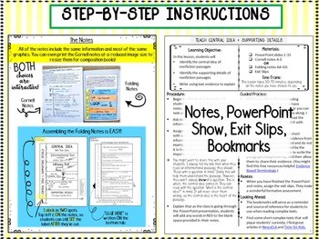The central idea slide presentation includes 38 animated slides. The pdf file includes folding notes, Cornell notes, AND exit slips for formative assessments. Students will also have bookmarks so they will have reference material at their fingertips!
